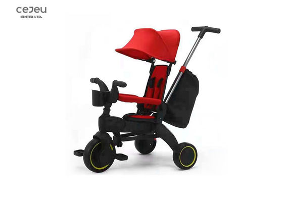 Kid Riding Tricycle Folding Tricycle With Pushbar And Canopy And Mom Bag![]()